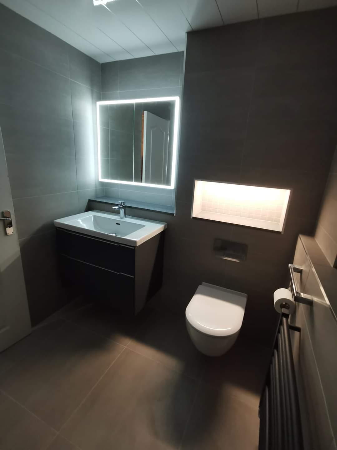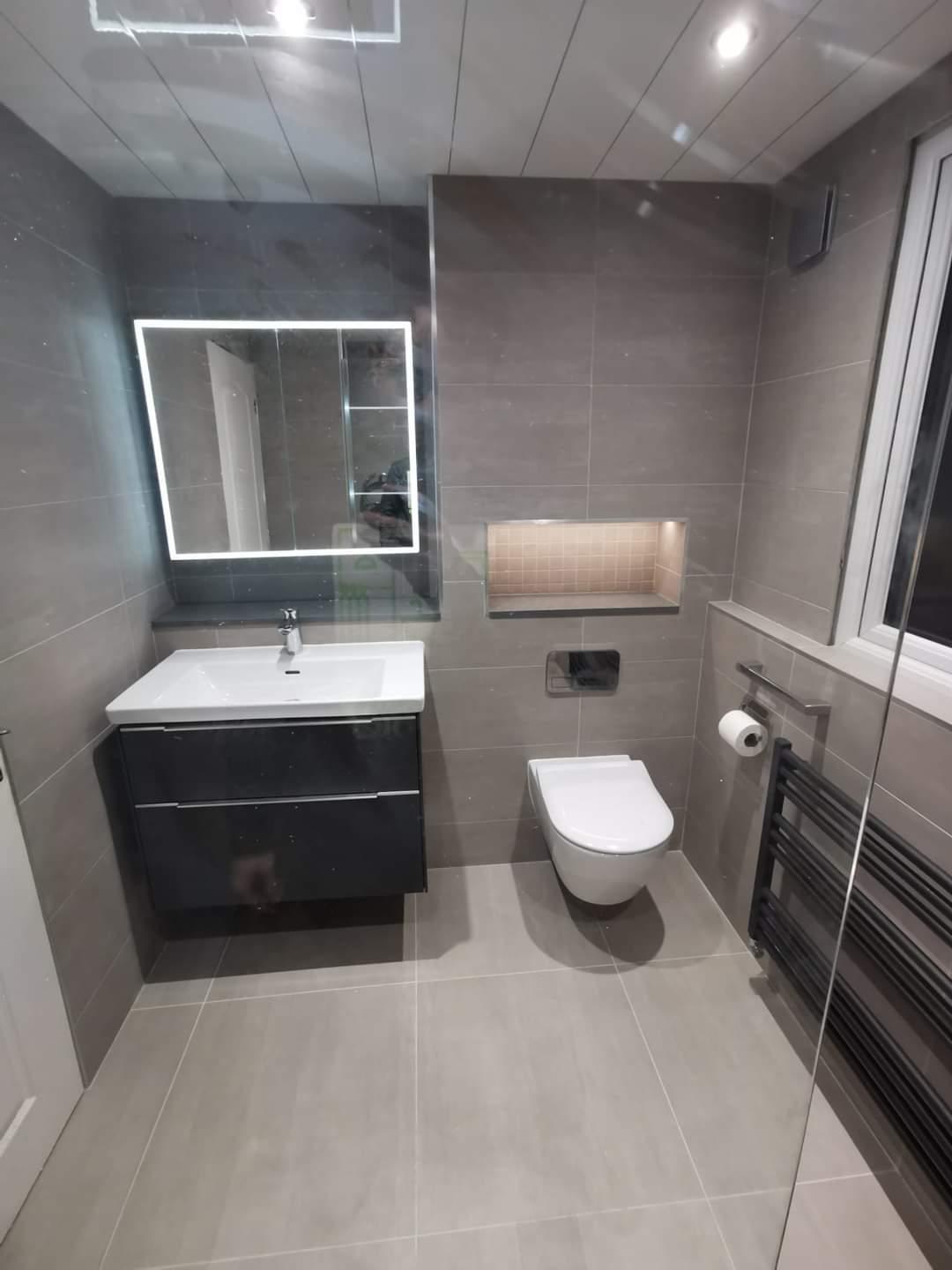 Using premium Villeroy & Boch fixtures and elegant UNIT FOUR tiles, we’ve created a contemporary design that maximises space through wall-hung sanitaryware and clean, modern lines. The level-access Impey shower area with discreetly integrated KEUCO grab bars ensures accessibility without compromising aesthetics.